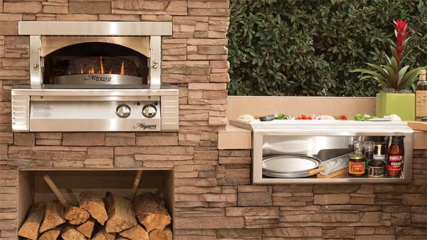 Outdoor kitchens with pizza ovens have emerged as a captivating hub for culinary aficionados, symbolizing a convergence of gastronomic delight and outdoor leisure. These ovens, meticulously crafted from durable materials like brick or specialized alloys, stand as a testament to the quest for an authentic wood-fired pizza experience. With their capability to reach soaring temperatures and ensure uniform cooking, they elevate pizza-making to an art form, yielding impeccably crispy crusts infused with a tantalizing smoky essence. Integrated seamlessly into the fabric of outdoor kitchens, these pizza ovens transcend mere functionality, inviting homeowners to embark on a journey of culinary exploration. Beyond the realm of traditional pizza, they serve as a canvas for creativity, encouraging experimentation with an array of toppings and facilitating forays into artisanal bread baking and vegetable roasting, thereby fostering a culture of epicurean innovation amidst the serenity of outdoor living.