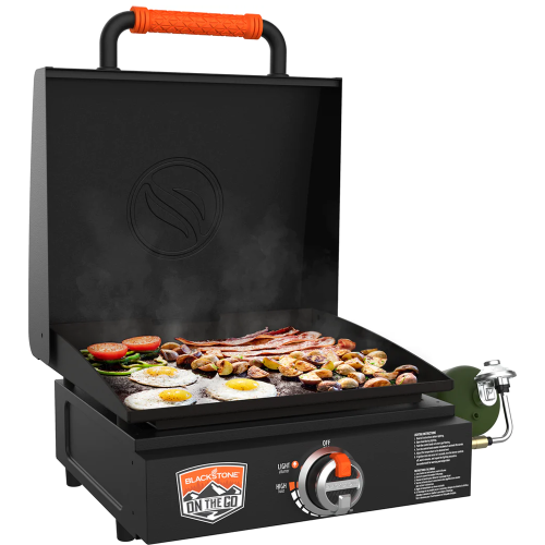 Blackstone Griddle On the Go 17-Inch 1-Burner Tabletop Propane Gas Commercial Style Flat Top Griddle with Hood